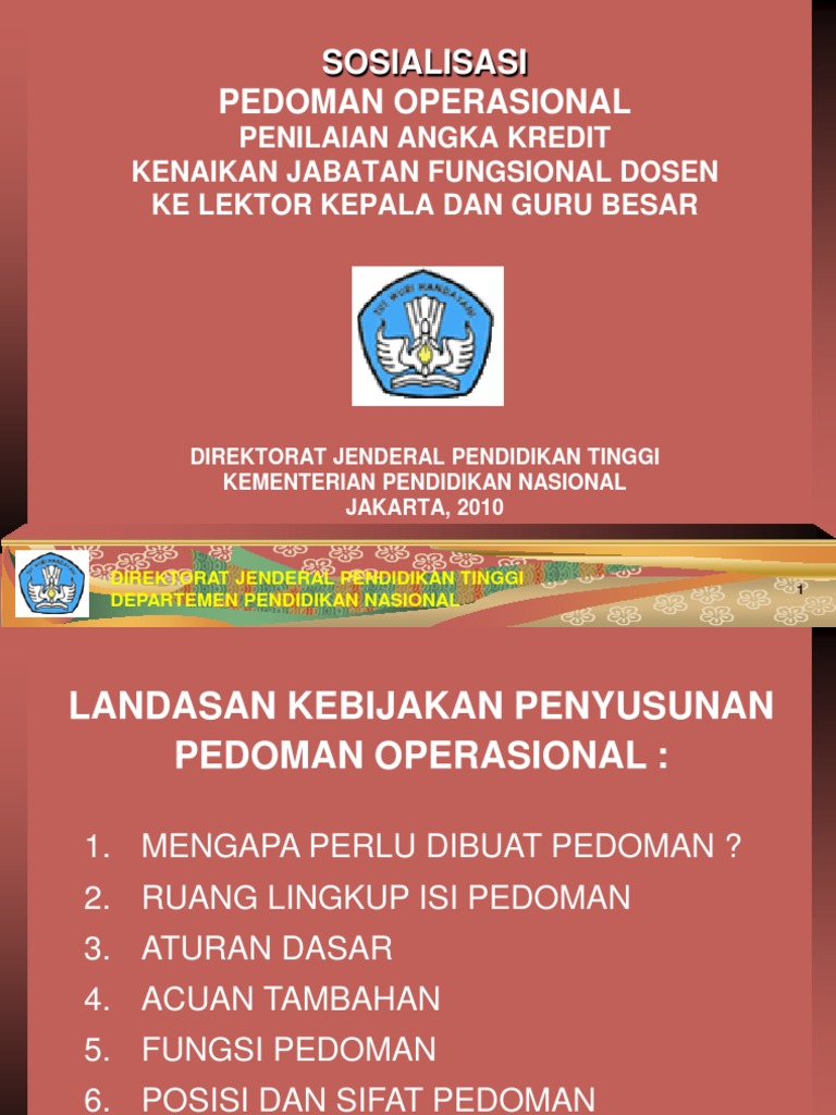 Pedoman Operasional Penilaian Angka Kredit Kenaikan Jabatan Fungsional Dosen Ke Lektor Kepala Dan Guru Besar Direktorat Jenderal Pendidikan Tinggi Ppt Download