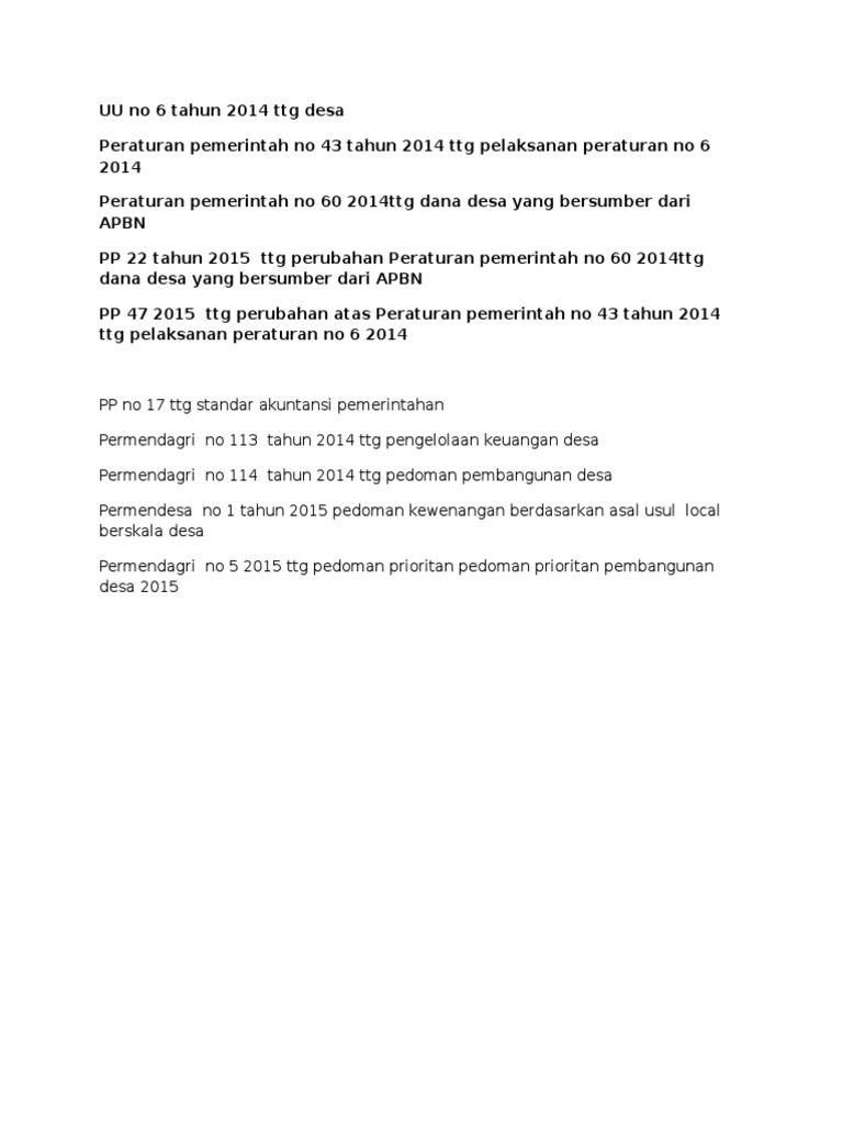 Pp No 43 Th 2014 Tentang Pelaksanaan Uu Desa Pp No 60 Tahun 2014 Tentang Dana Desa Yang Bersumber Dari Apbn Uu No 6 Tahun 2014 Tentang Desa