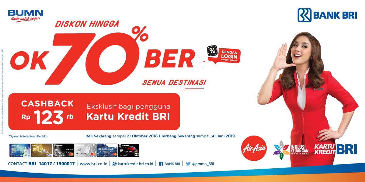 Bank Bri On Twitter Terbang Lagi Yuk Naik Airasia Indo Bayar Pakai Kartu Kredit Bri Dapat Cashback Rp123 Ribu Pesan Sekarang Sampai 21 Oktober 2018 Https T Co K82anvy7oz