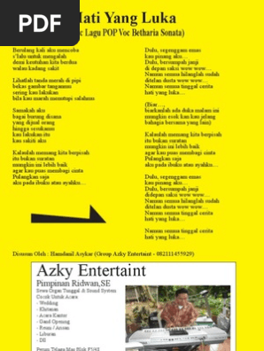 Lirik dan Chord Gitar Hati yang Luka Milik Betharia Sonata Dulu Segenggam Emas Kau Pinang Aku. Chord berulang kali aku mencoba. Berikut lirik dan chord lagu Hati yang Luka dari Betharia Sonata. Am G F Am G ku akui sungguh beratnya F C G tinggalkanmu yang dulu pernah ada Am G namun harus aku lakukan F C G F G karena ku tahu ini yang terbaik Reff.