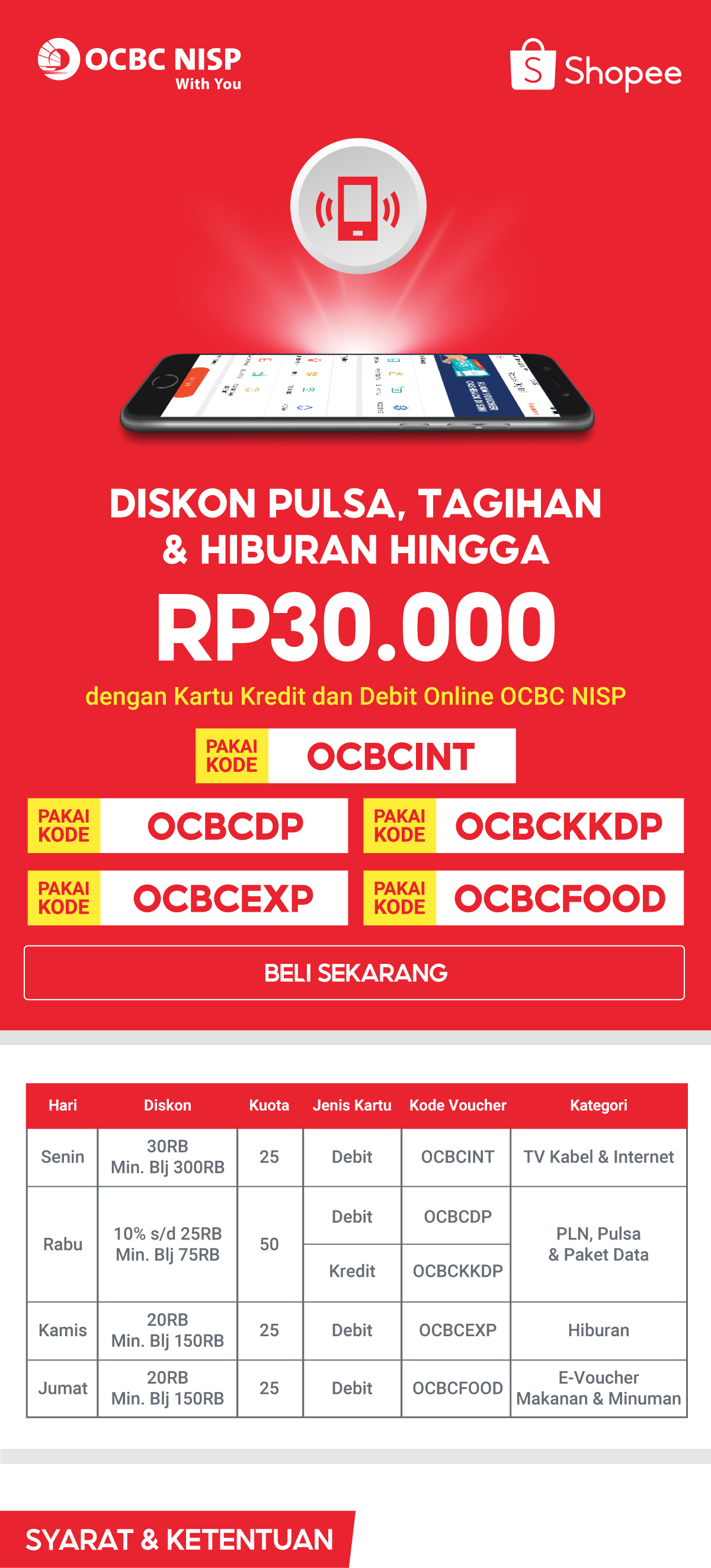 Promo Kartu Kredit Terbaru Bank Ocbc Nisp 2021. Kini Anda dapat memperoleh berbagai promo terkini dengan mudah dan praktis hanya di pilihkartu.com Tersedia pilihan promo sesuai dengan kategori bank, brand/ jaringan kartu kredit dan lainnya. Ketika Anda menemukan pilihan cukup klik detail untuk melihat informasi lengkapnya.