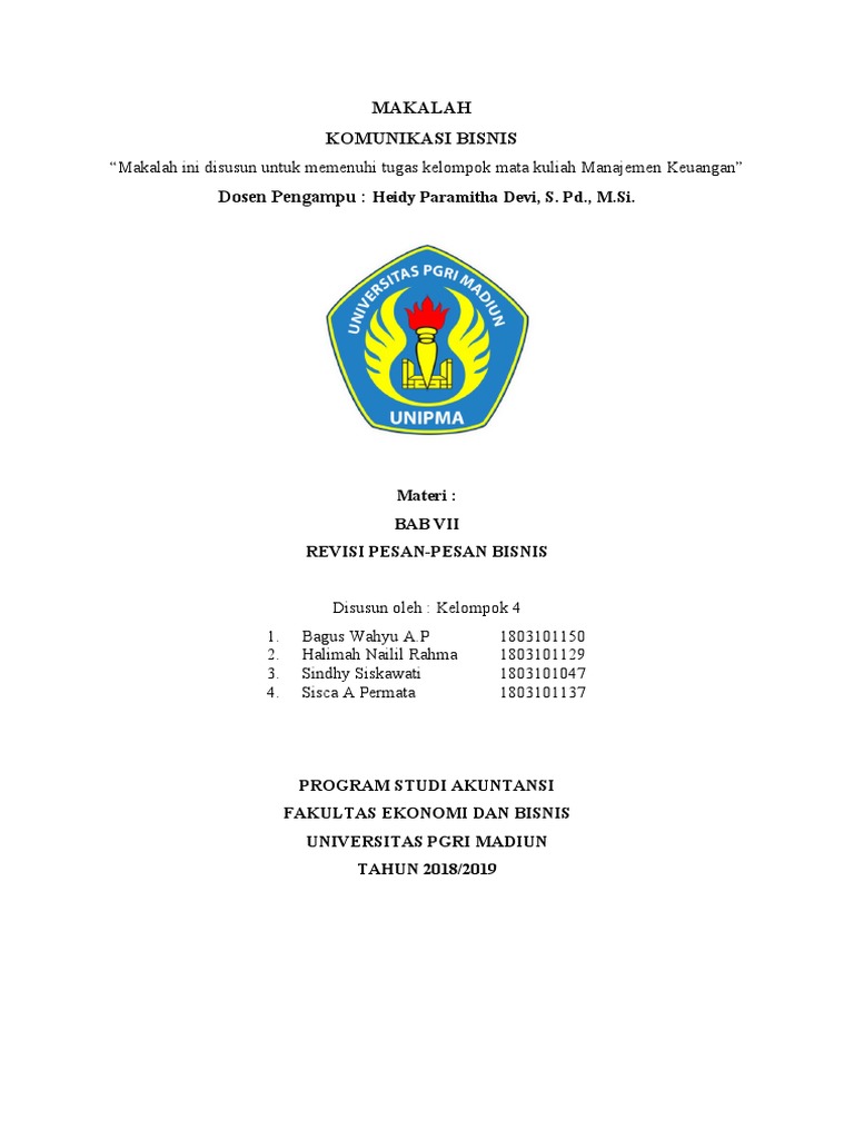 Makalah Komunikasi Bisnis Kelompok 4 Pdf Makalah Komunikasi Bisnis Penulisan Pesan Pesan Bisnis Dosen Pengampu Dra Ec Dyah Ratnawati Mm Disusun Oleh Course Hero