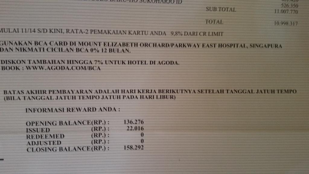 June 5, 2015 - Halo BCA on Twitter: "@n_ncha Utk ubah tgl cetak tagihan ... Tanggal print out inilah yang dimaksud dengan tanggal pencetakan tagihan kartu kredit. Jadi terkadang ada selisih 1 hari antara tanggal penagihan dengan tanggal pencetakan tagihan. Tanggal jatuh tempo adalah batas akhir pembayaran saldo terhutang yang sudah harus diterima bank penerbit kartu, yaitu 15 hari sejak tanggal cetak.