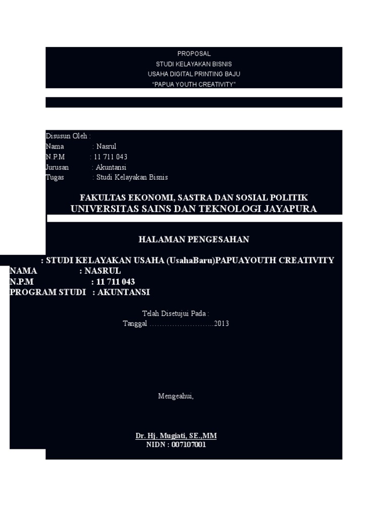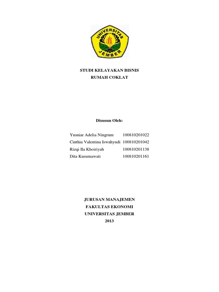 Contoh proposal studi kelayakan bisnis. Contoh proposal business plan apotek. Contoh proposal pendirian apotek pdf. Il6 can mediate proinflammatory. Windows the most used operating system which released back july I know this is off subject but I simply needed to ask. Mekhet is a sourcebook for Vampire: Analisis Kelayakan Bisnis Kedai Kopi (Studi Kasus Pada Agrowisata N8 Malabar, Pangalengan, Kabupaten Bandung) Feasibility Analysis of Coffee Shop Business (A Case of Study in Agrowisata N8 Malabar ... Didalam makalah ini dijelaskan Studi Kelayakan Bisnis laundry yaitu "All Star Laundry". Dalam penyusunan makalah ini penulis menyadari sepenuhnya bahwa masih banyak terdapat kekurangan-kekurangan dan kesalahan-kesalahan.Oleh karena itu penulis amat mengharapkan kritik serta saran yang bersifat membangun dari pembaca demi kesempurnaan ... Contoh Studi Kelayakan Bisnis. Dalam studi kelayakan bisnis, ada beberapa aspek yang perlu Anda tinjau, tetapi untuk bisnis satu dengan yang lainnya akan memiliki aspek yang berbeda-beda tergantung dari kebutuhan. Nah berikut aspek-aspek dalam studi kelayakan bisnis: Aspek legalitas. Aspek ekonomi.
