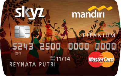 Welcome Bonus Mandiri SKYZ || Mandiri Kartu Kredit Syarat dan Ketentuan. Berlaku hanya 1 kali untuk nasabah baru Mandiri Kartu Kredit atau pemohon yang telah menutup fasilitas Mandiri Kartu Kredit di atas 6 bulan terakhir. Tidak berlaku untuk kartu tambahan (supplement). Pemegang kartu telah melakukan aktivasi dan transaksi retail pertama kali dalam 3 bulan setelah kartu disetujui. Daftar Produk || Mandiri Kartu Kredit untuk anda yang gemar travelling, rencanakan perjalanan anda yang berikutnya dengan mandiri signature dan mandiri skyz card. dapatkan nilai tukar kurs yang kompetitif, asuransi perjalanan, dan khusus untuk mandiri signature, anda akan mendapatkan 3 fiestapoin untuk setiap transaksi rp 20.000,-serta dapat terbang lebih cepat dengan menukarkan 100 …