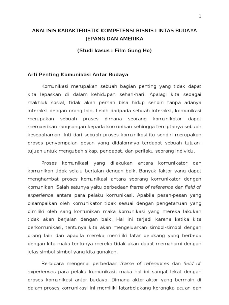 Makalah Komunikasi Lintas Budaya Pdf | My Skripsi MAKALAH LINTAS BUDAYA. Komunikasi Bisnis Lintas Budaya 4 Pengertian Komunikasi Lintas Budaya Komunikasi bisnis lintas budaya adalah komunikasi yang digunakan dalam dunia bisnis baik komunikasi verbal maupun nonverbal dengan memperhatikan faktor- faktor budaya di suatu daerah wilayah atau negara. Untuk meningkatkan komunikasi antar budaya anda ... MAKALAH_KOMUNIKASI_BISNIS LINTAS BUDAYA.docx - MAKALAH ... BAB II ISI 2.1 Pengertian Komunikasi Bisnis Lintas Budaya. Bagi para pelaku bisnis, pemahaman yang baik terhadap budaya di suatu daerah, wilayah, atau negara menjadi sangat penting artinya bagi pencapaian tujuan organisasi bisnis. Secara sederhana, komunikasi bisnis lintas budaya adalah komunikasi yang digunakan dalam dunia bisnis baik komunikasi verbal maupun nonverbal dengan memperhatikan ... UTS Komunikasi Lintas Budaya - Rafian's Journey I.1. Latar Belakang Masalah. Makalah Komunikasi Antarbudaya ini merupakan tugas pengganti UTS (Ujian Tengah Semester) makalah ini merupakan kumpulan jawaban yang disusun berdasarkan pertanyaan-pertanyaan yang diberikan oleh dosen pengempu mata kuliah Komunikasi Antarbudaya yakni Bapak.Dadan Anugrah. I.2. Perumusan Masalah.