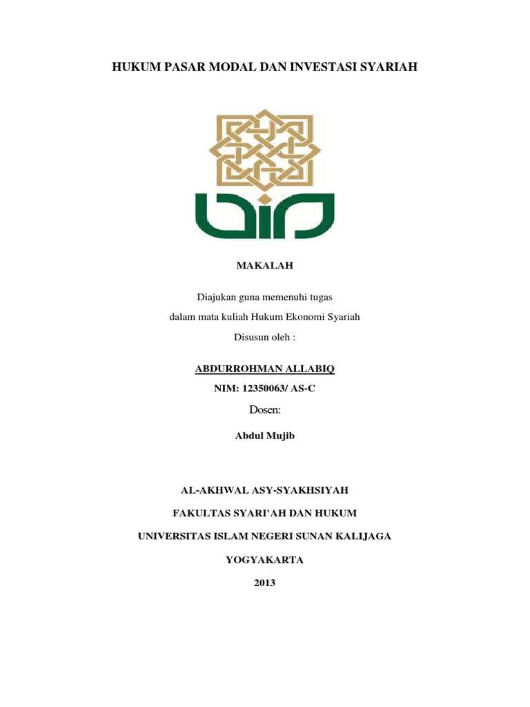Hukum Investasi Pasar Modal POKOK-POKOK MATERI: •Pasar Modal : Kebutuhan Dana vs Kebutuhan Investasi •Karakteristik Industri Pasar Modal •Perkembangan Pasar Modal. Fundamental dalam Investasi di Pasar Modal ... Semi Kuat Analisis Teknikal Grafik ... kepada publik dan dipublikasikan melalui. Documents. View of Tinjauan Hukum Investasi Terhadap Pasar Modal ... dasar hukum investasi dalam islam berdasarkan Qur'an dan Hadist. Hasil Investasi ke dalam pasar modal syariah perlu adanya tinjauan-tinjuan yang dilakukan ... Aspek hukum dalam penyelenggaraan investasi di pasar ... Pasar modal syariah tidak mengenal kegiatan perdagangan semacam short selling beli atau jual dalam waktu yang amat singkat untuk mendapatkan keuntungan ...