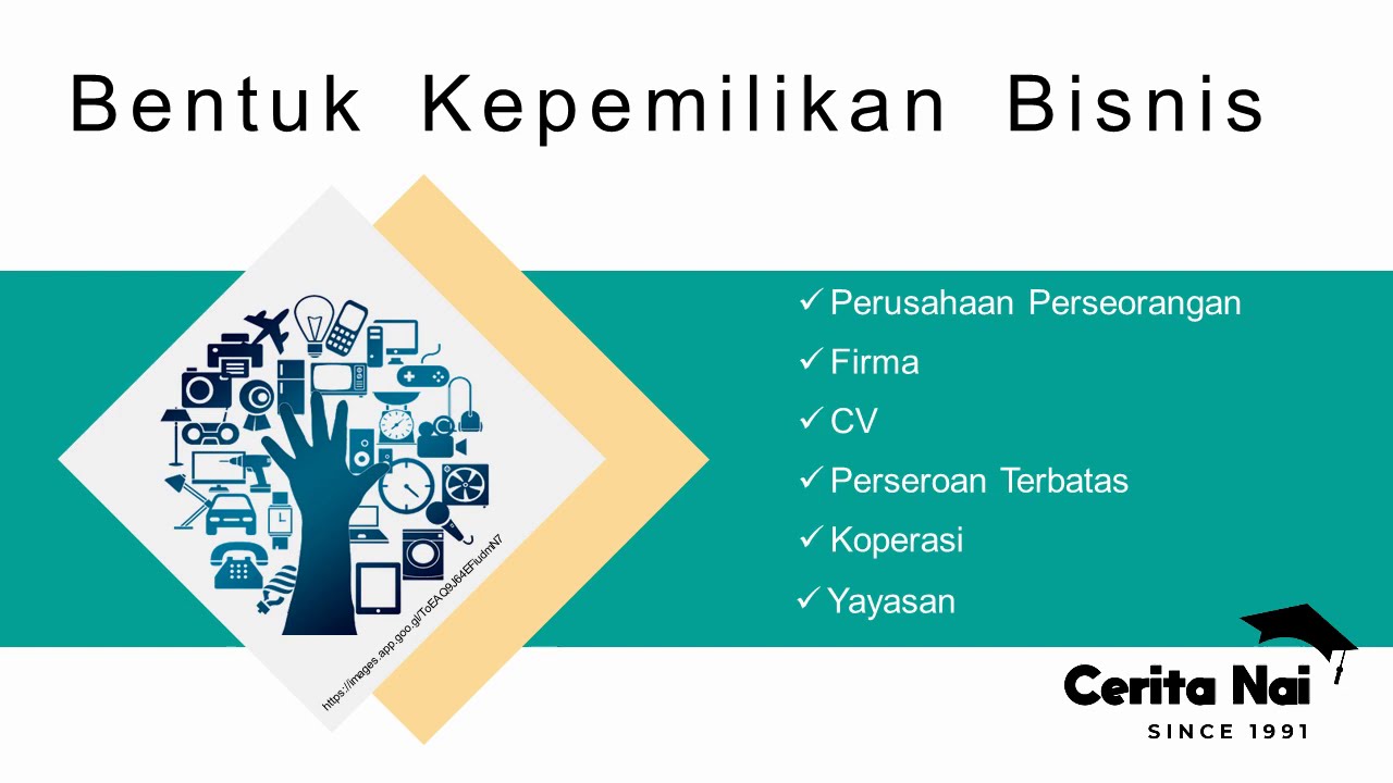 BENTUK - BENTUK KEPEMILIKAN BISNIS (Economy) - Sahara ... Berikut ini akan dibahas bentuk - bentuk kepemilikan bisnis untuk pedoman yang dapat membantu mengambil keputusan bentuk kepemilikan yang sesuai bagi orang yang ingin terjun ke dunia bisnis. Bentuk - bentuk kepemilikan bisnis yang akan diuraikan, yaitu: Usaha Perseorangan Firma Persekutuan Komanditer (CV) Perseroan Terbatas (PT)