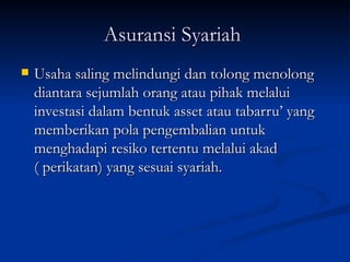 Apakah Hukum Asuransi Jiwa Syari'ah? | Konsultasi Agama ... Asuransi jiwa syari'ah yang dipraktekkan di Indonesia ada yang berusaha untuk mengembalikan sebagian dana nasabah ketika dalam kurun waktu tertentu tidak terjadi musibah, namun ini masih belum bisa keluar dari unsur gharar, perjudian, dan riba (apabila mengembalikan sama atau lebih dari yang dibayar nasabah).