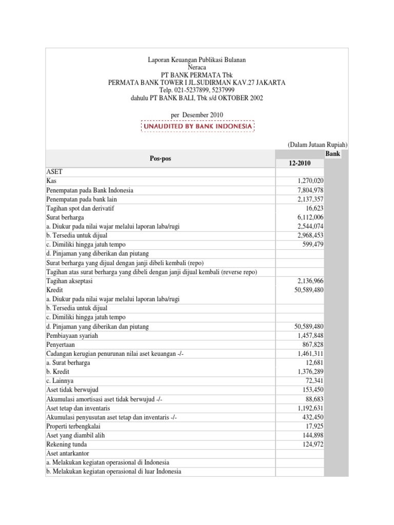 Bank Permata (BNLI) Tahan Laba 2020 untuk Perkuat Modal ... Bisnis.com, JAKARTA - PT Bank Permata Tbk. memutuskan kembali tidak membagikan dividen dari laba tahun 2020.. Berdasarkan pengumuman ringkasan risalah RUPS Tahunan 2021 dan RUPSLB yang diselenggarakan 27 April 2021, rapat menyetujui penggunaan keuntungan bersih perseroan untuk tahun buku yang berakhir pada tanggal 31 Desember 2020 sebesar Rp721,59 miliar. PT BANK PERMATA, Tbk - Annual Report 2015 : PT BANK PERMATA, Tbk Laporan Tahunan 2015 * Korporasiana adalah tentang sekilas data perusahaan-perusahaan di Indonesia. Informasi, permintaan pemuatan maupun perubahan, hubungi: info@annualreport.id