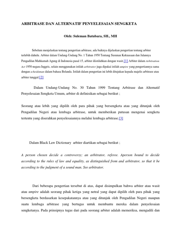 √ 10 Contoh Arbitrase dalam Kehidupan ... - DosenPPKN.Com Arbitrase adalah salah satu bentuk upaya penyelesaian sengketa dalam bentyk ad hoc maupun sengketa internasional.. Berbeda dari penyelesaian melalui mediasi, penyelesaian sengketa melalui arbitrase berarti para pihak menyerahkan sengketa mereka kepada satu orang atau lebih yang imparsial (arbiter) untuk memperoleh suatu putusan penyelesaian sengketa yang final dan mengikat secara hukum yang ... Kasus Penyelesaian Sengketa Perbankan Melalui Mediasi Read Online Kasus Penyelesaian Sengketa Perbankan Melalui Mediasi dev.cavanektar.gr options Judul : …Sedangkan untuk daerah luar Jawa dan Madura berlaku ketentuan Rechsreglement Buitengewesten (Rbg. S. 1927 no.227 2.5 Kasus Penyelesaian Sengketa melalui Mediasi Kasus Non Litigasi di Lingkungan Sekitar (Kasus Penyerobotan Tanah antara Hj. 10 Sengketa Investasi Indonesia di Arbitrase ISDS: Kilas ... Namun diketahui sebelumnya bahwa Oleovest telah menyelesaikan sengketa dengan PT Nusantara III di Badan Arbitrase Nasional Indonesia (BANI) dimana Oleovest meminta kompensasi dari PTPN III untuk pelanggaran Joint Venture Agreement (JVA) terkait penilaian harga saham Oleovest yang dinilai tidak sesuai dengan harga pasar.