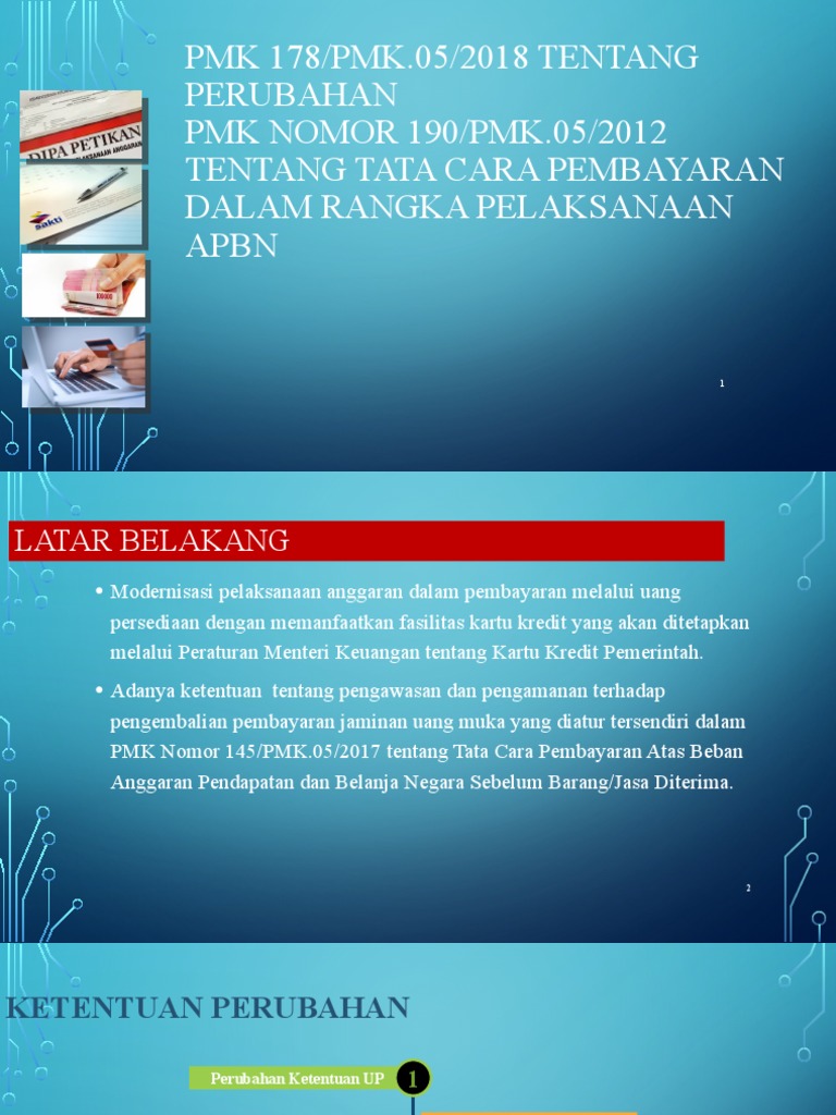 42 pmk kartu kredit pemerintah - Solusi Keuangan UP Kartu Kredit Pemerintah sebesar 40% (empat puluh persen) dari besaran UP sebagaimana diatur dalam PMK Nomor 178/PMK.05/2018 tentang Perubahan atas PMK Nomor 190/PMK.05/2012 tentang Tata Cara Pembayaran dalam rangka Pelaksanaan Anggaran Pendapatan dan Belanja Negara UP terdiri dari UP Tunai dan UP Kartu Kredit Pemerintah. UP Tunai UP KKP 60% 40%