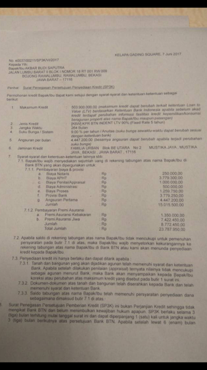 Dokumen yang diterima setelah akad kredit kpr. Proses KPR, Berapa Lama? Cek Juga Syarat dan Biayanya Ada beberapa pihak yang harus hadir saat tanda tangan akad kredit, antara lain: Pihak pembeli (suami dan istri). Wakil dari bank. Pihak penjual. Notaris. Semua pihak tersebut tidak bisa diwakili karena harus menunjukkan identitas aslinya kepada notaris. Proses Lengkap Akad Kredit KPR Rumah yang Wajib Diketahui ... Dokumen yang perlu dibawa saat hendak melaksanakan akad kredit antara lain: - KTP / KTP suami istri (jika sudah menikah) - NPWP / NPWP suami istri (jika sudah menikah) - Surat Nikah - Kartu Keluarga Perlu diingat, dokumen yang dibawa harus berupa dokumen asli. Berkas Yang Diterima Setelah Akad Kredit Rumah? (Correct ... Dokumen yang Diterima setelah Akad Kredit KPR Perjanjian Kredit Akta Jual Beli. Sumber: inanews.co.id. 2. Sertifikat Tanda Bukti Hak dan Izin Mendirikan Bangunan. 3. Surat Kuasa Memberikan Hak Tanggungan (SKMIIT) Pengakuan Utang dan Kuasa Menjual. Polis Asuransi Kebakaran. 6. Polis Asuransi Jiwa Kredit (AJK) › id › blog20 Pinjaman KTA Bunga Rendah Terbaik dari ... - Qoala Indonesia Nov 03, 2021 · Bank CIMB Niaga yang berdiri sejak tahun 1955 juga banyak digunakan oleh nasabah di Indonesia. Bank ini memiliki pangsa pasar sebesar 11% dan berstatus sebagai bank penyedia Kredit Pemilikan Rumah (KPR) terbesar ketiga di tanah air. Tak hanya KPR, CIMB Niaga juga memiliki pinjaman KTA bunga rendah lewat produk X-Tra Dana. Tenor dan bunga X-Tra ...