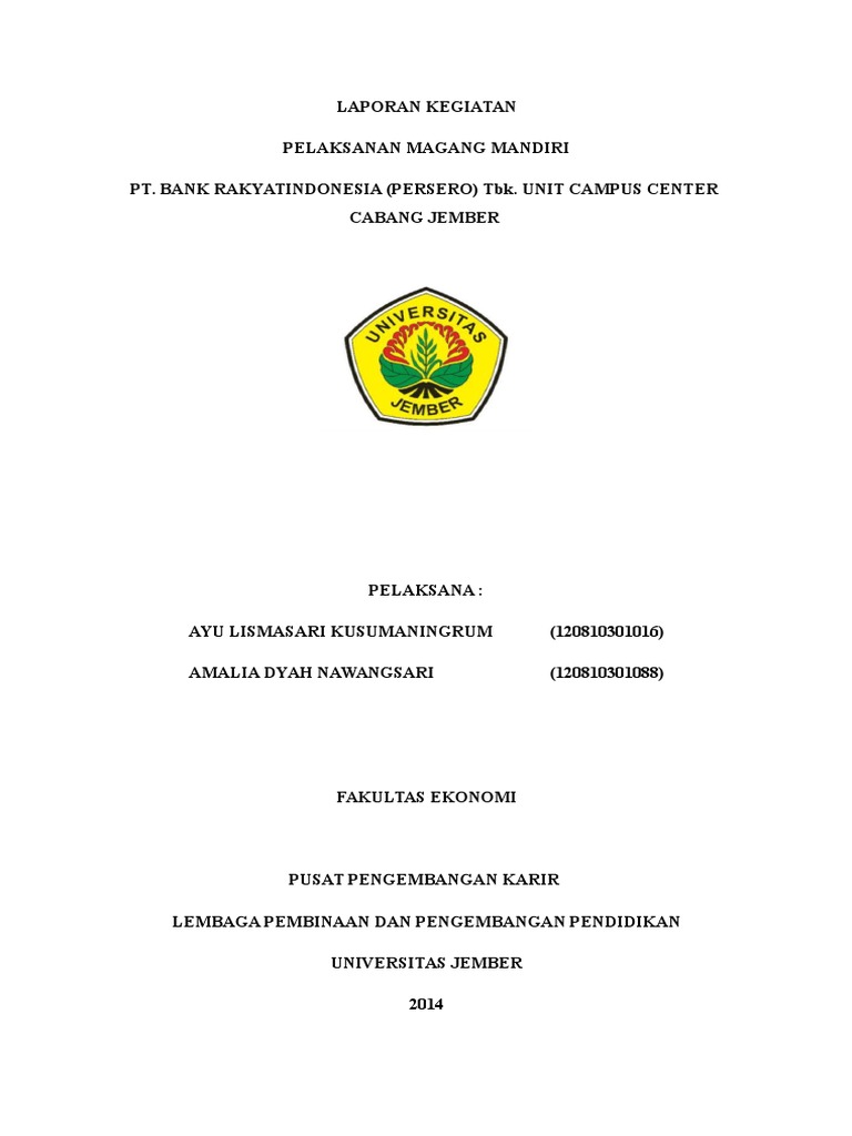 Contoh Laporan Magang Mahasiswa Di Bank Laporan magang Bank Indonesia berisi tentang contoh laporan yang pernah penulis buat saat melakukan magang di Bank Iindonesia Kalimantan Selatan. Tempat pelaksanaan Magang dilaksanakan di PT. 100812011 Program studi. Contoh judul laporan pkl di bank bjb kumpulan contoh laporan. Fase ini adalah fase yang kami anggap benar-benar krusial atau.